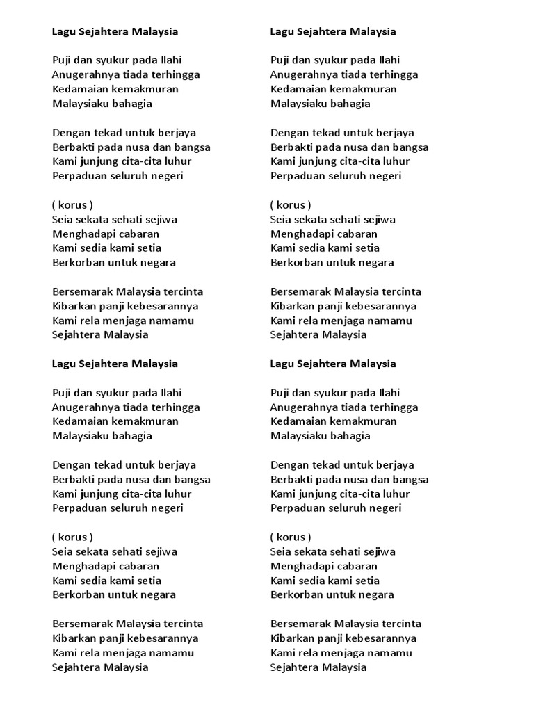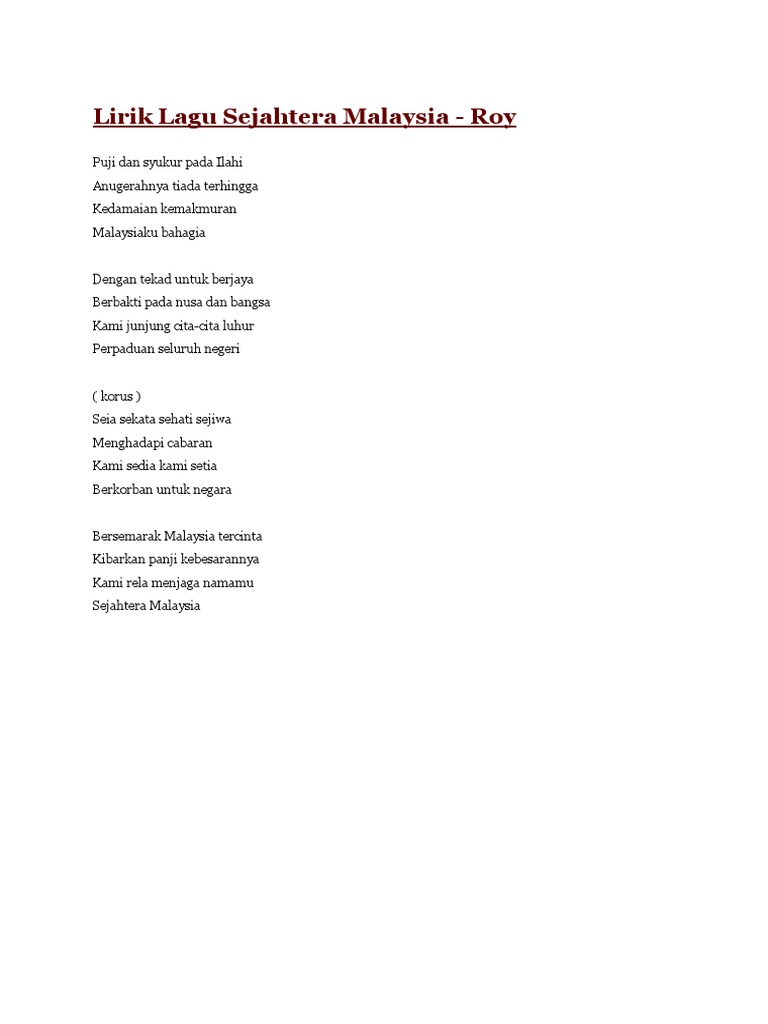 Lirik Lagu Sejahtera Malaysia Pdf